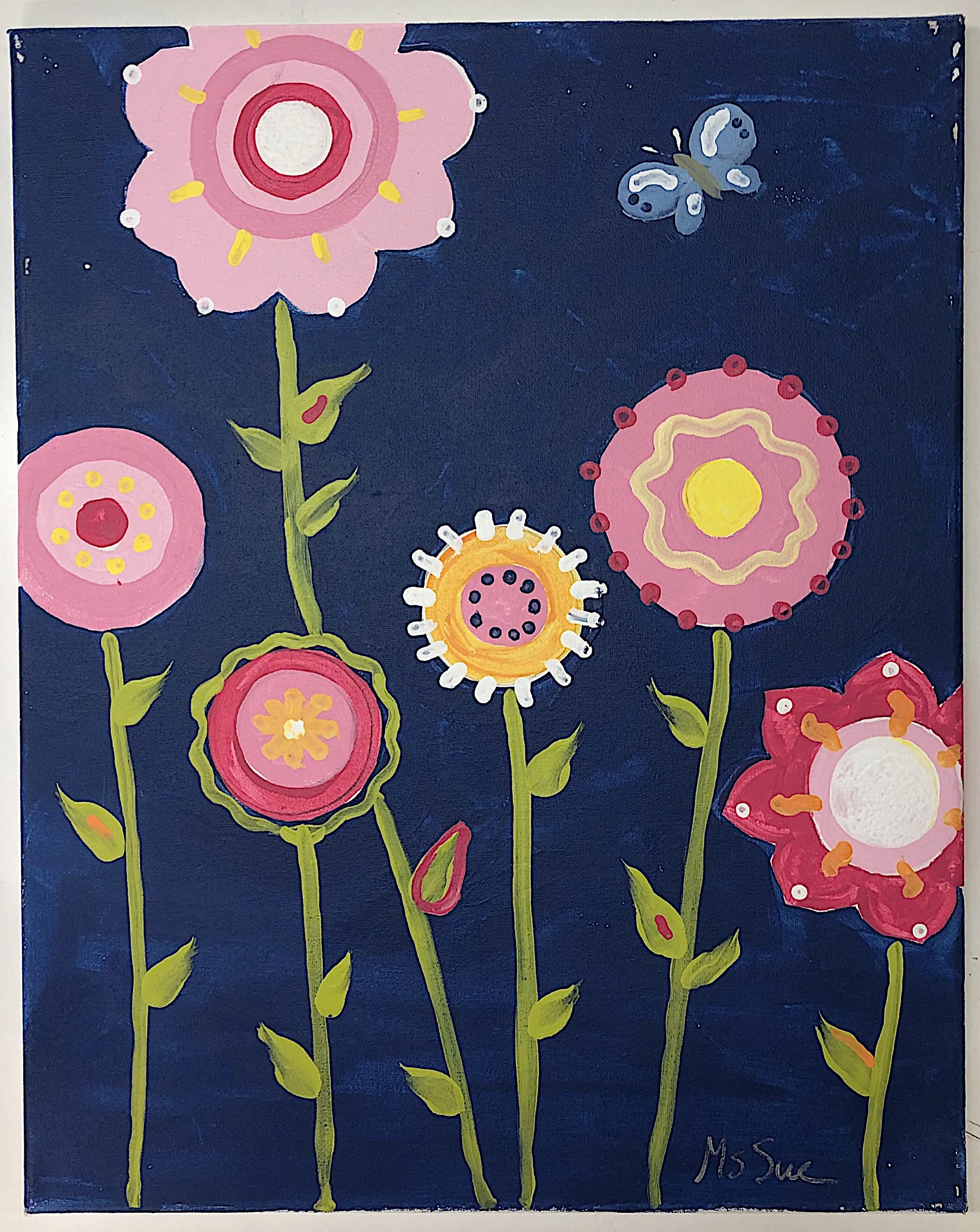 Just above the “BOOK” option there are some examples of some of the paintings we have done, however, you are not limited to those. We are all about creativity here at Ms. Sue’s so give us your idea! We love doing new paintings!