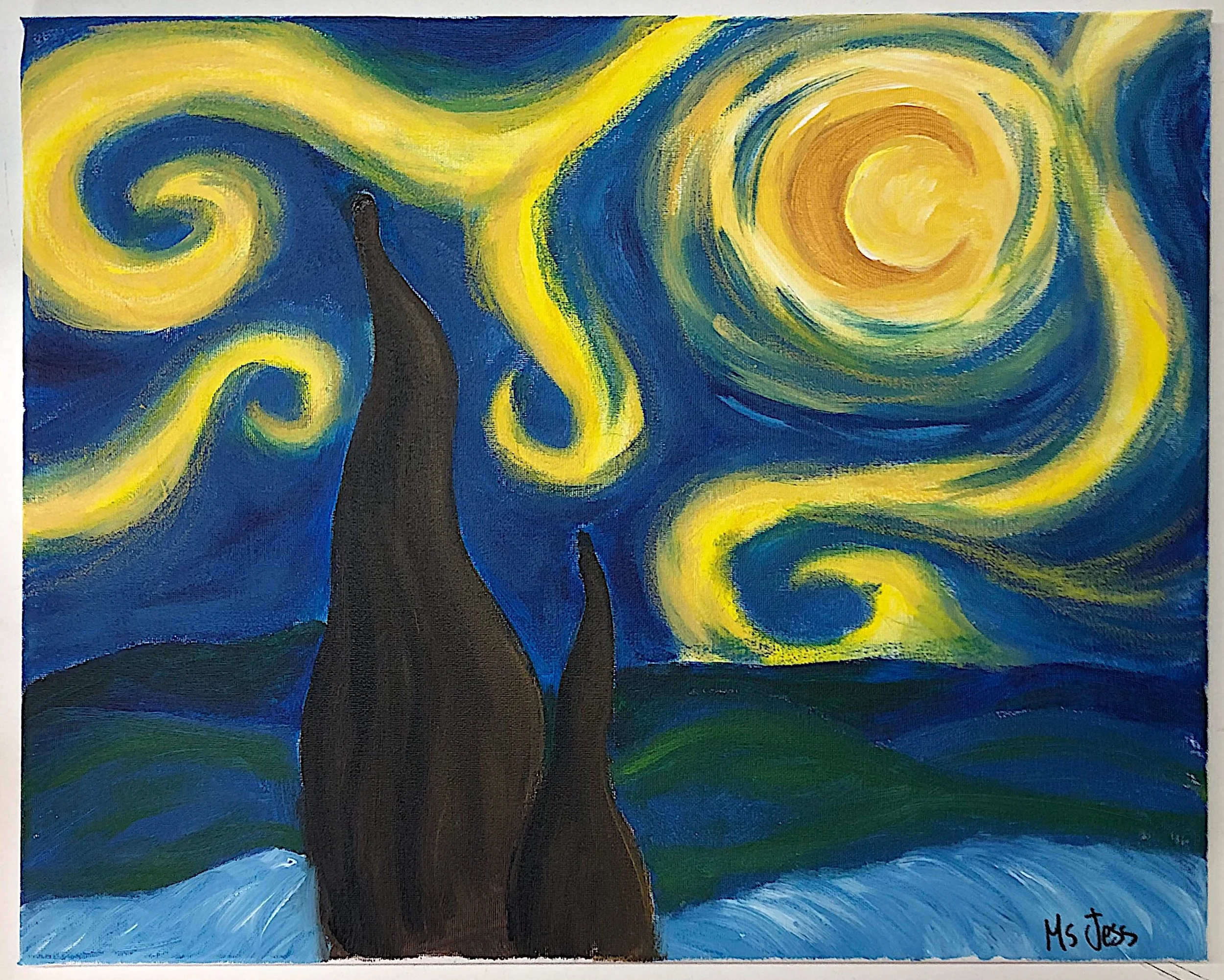 This is fun for all! Get your friends together and book your private pet paint party! Email a photo of your pet and we will draw it out on a canvas for you, prepare your palette, and let you paint. We are there to coach you and see that you go home with a keepsake for years to come. These make great gifts too!